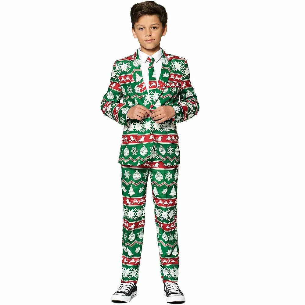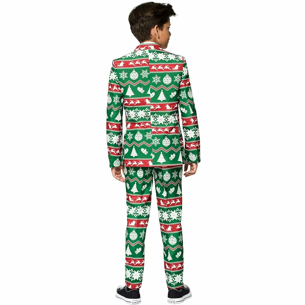 This fun Suitmeister Christmas suit definitely puts your kid on the ‘nice list’. Its green and red nordic pattern oozes festiveness and gets everyone around you in the Christmas spirit in one glance. The outfit consists of a jacket, pants and a safe clip-on tie. The pants have an adjustable waistband for a comfortable and stylish fit.