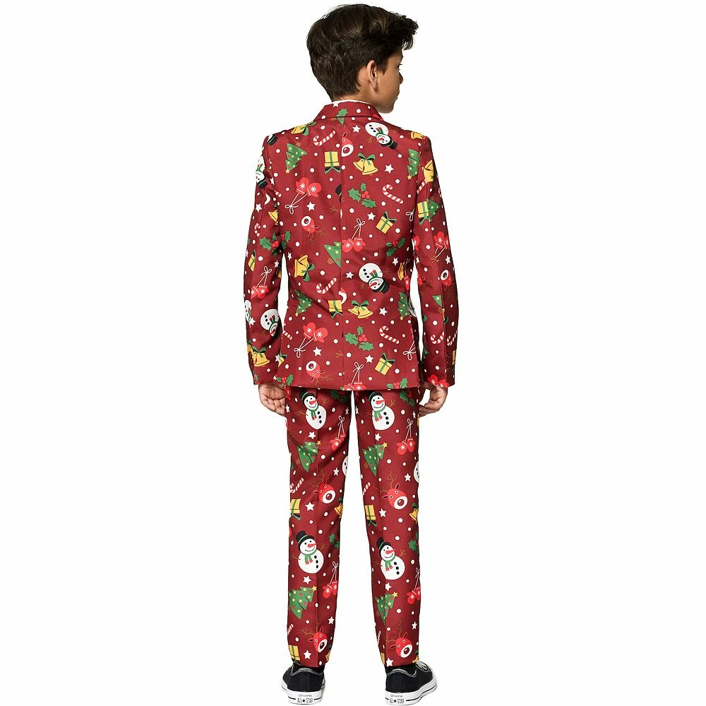 Light up the dark days around Christmas with this festive Suitmeister red suit: it includes light-up technology that can easily be switched on and off for an extra eye-catching look. The outfit consists of a jacket, pants and a safe clip-on tie. The pants have an adjustable waistband for a comfortable and stylish fit.