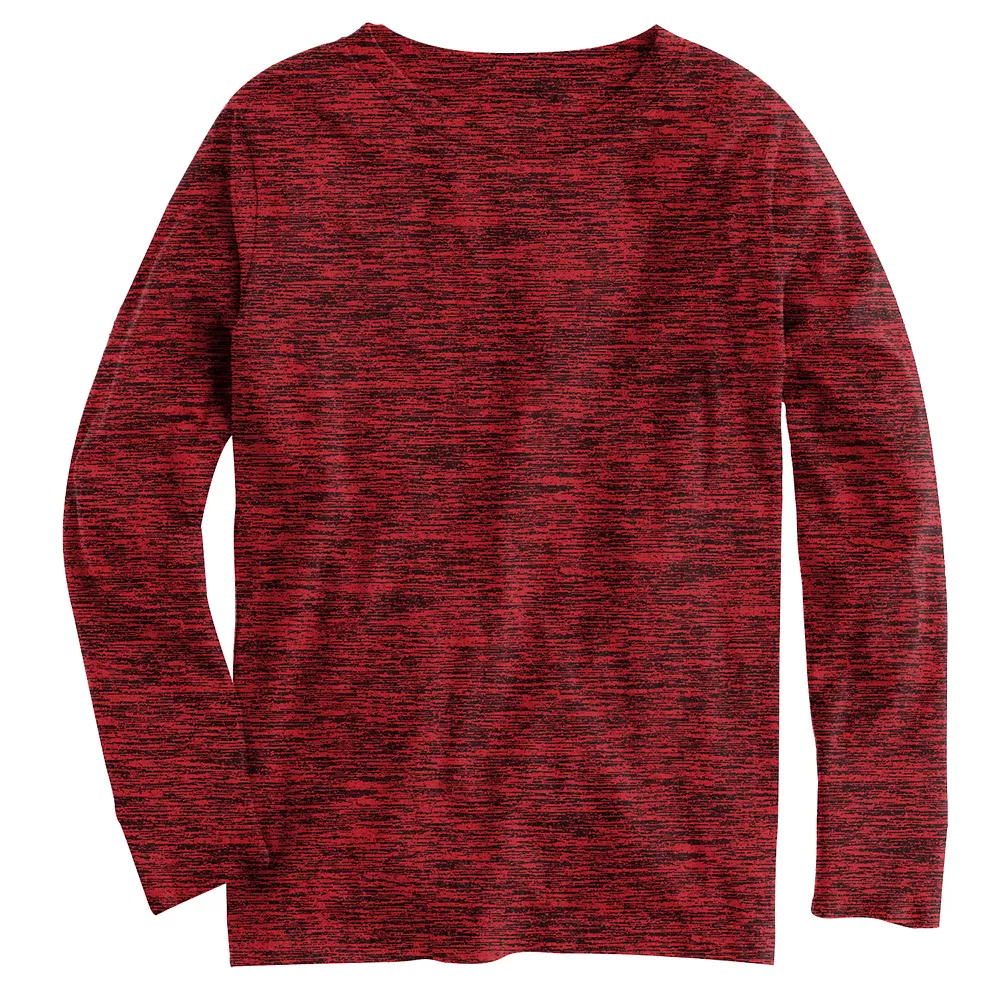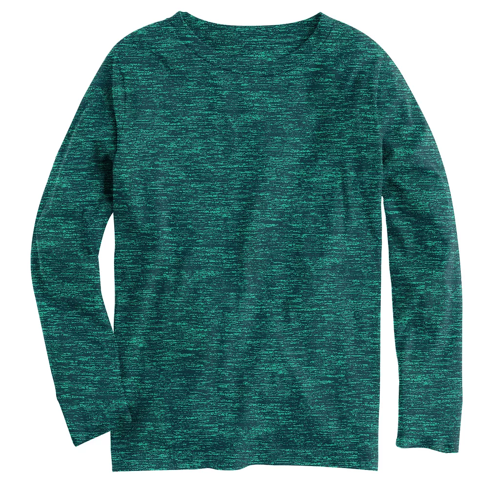 This Tek Gear boys’ tee supports his active lifestyle. Quick-drying fabric keeps him cool, dry and comfortable as he runs, plays and chills.