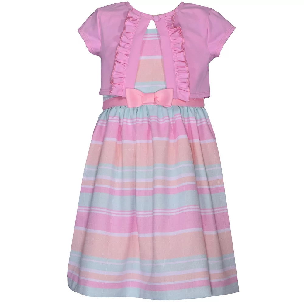 She’s sure to feel pretty in this girls’ dress and ruffled cardigan from Bonnie Jean.